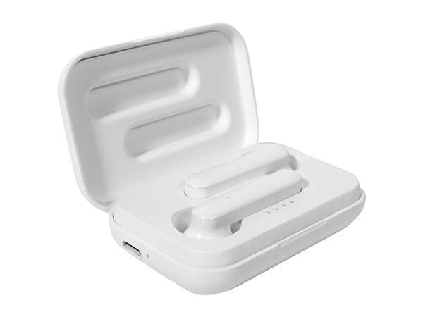 Audífonos Inalámbricos Nara se conectan al celular de forma inalámbrica. Los auriculares cuentan con función touch en el costado de los auriculares para avance, retroceso, reproducción y pausar musica. También cuenta con la función de tomar y finalizar una llamada. Estuche que permite cargar la batería de los auriculares. Indicador de batería.