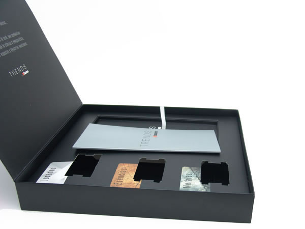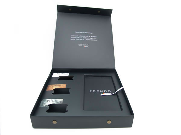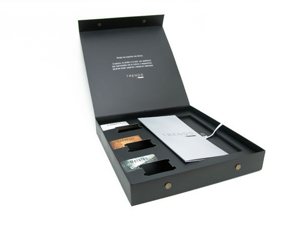 Caja Bticino Trends Tamaño: 37,5x40x6 cms impresa a 5/0 color con cierre magnético. Cuna interior para 3 interruptores y catálogo impreso.