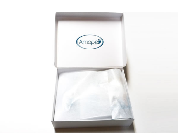 Kit de prensa Amope Caja impresa en adhesivo de alta resolución y emplacado en Cartulina duplex 360 gramos con interior papel vegetal para cubrir kit de toalla bordada, muestras de productos y un pendrive grabado con kit de prensa. Caja Tamaño 29x23x8 cms