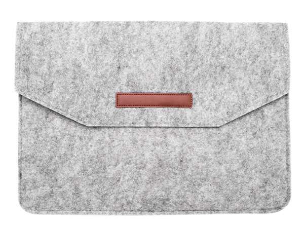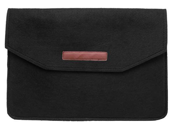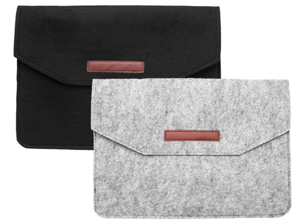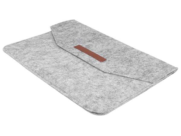 Porta documentos fieltro con 2 bolsillos posteriores, 1 bolsillo anterior, cierre velcro y etiqueta de cuero de 10×2 cm, para imprimir o grabar logo.