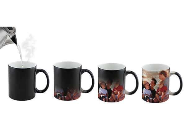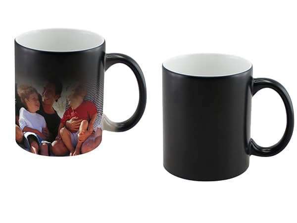 Tazón mágico sublimación 320cc En contacto con líquido caliente, la imagen sublimada comienza a aparecer nítidamente en el tazón. Una vez que el líquido se enfría, la imagen se desvanece y vuelve a aparecer el negro mate. Incluye caja blanca