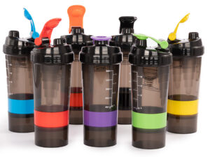 Vaso gym para batidos proteína shake, con 4 compartimentos.