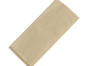 Tamaño:Bolsa: 10 x 22 cm. / Cuchillo: 16.5 x 2.2 cm. / Tenedor: 15.4 x 2.8 cm. / Cuchara: 16 x 3.2 cm. / Servilletas: 22×22 cm c/u (extendidas)