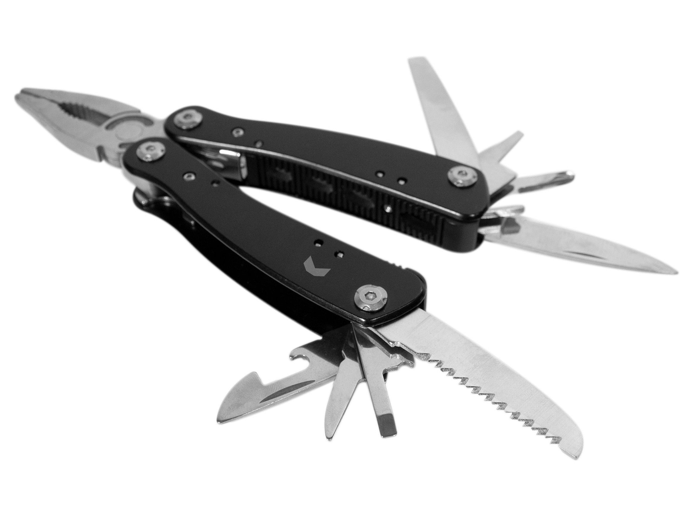 Multi Herramienta de Acero inoxidable. Peso: 245g. Multiherramientas con 9 herramientas: alicate, sierra, destornilladora punta plana, destornillador punta philips, destapador, lima, sierra con regla, navaja y abre latas. Con funda negra. Ideal para llevarla en el auto o comenzar una gran aventura. Presentacion en caja de regalo.