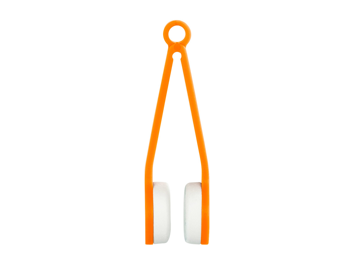 Limpiador de Lentes OPTIC con forma de pinzas. Gran alcance para todo tipo de lentes, cuenta con 2 pads redondos de microfibra.