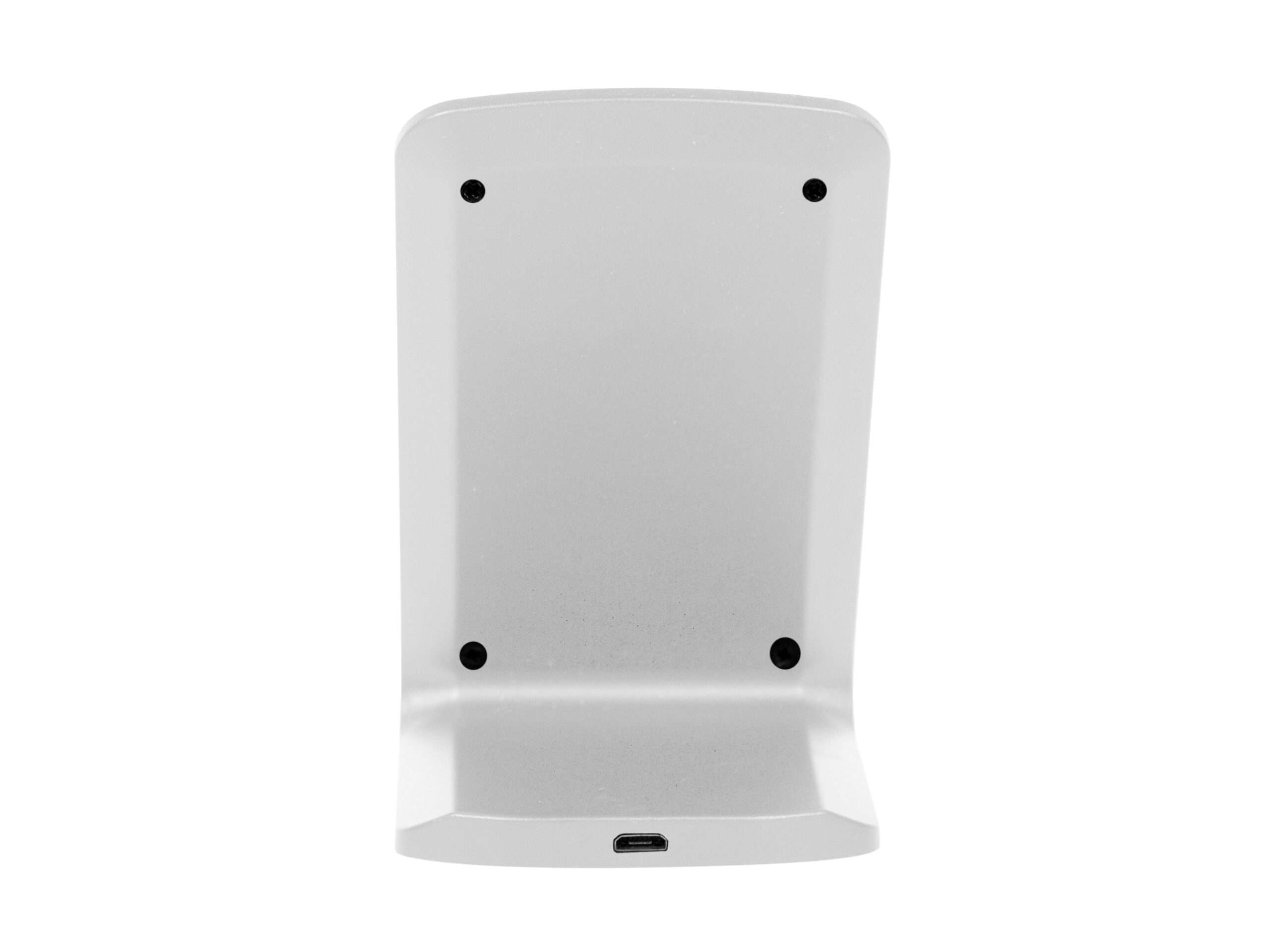 Cargador Wireless Kingwi de carga rápida para telefono móvil. Apoyando el celular comienza a cargar la bateria. Puede cargarse tanto en posicion horizontal como vertical gracias a la doble bateria de 10w c/u